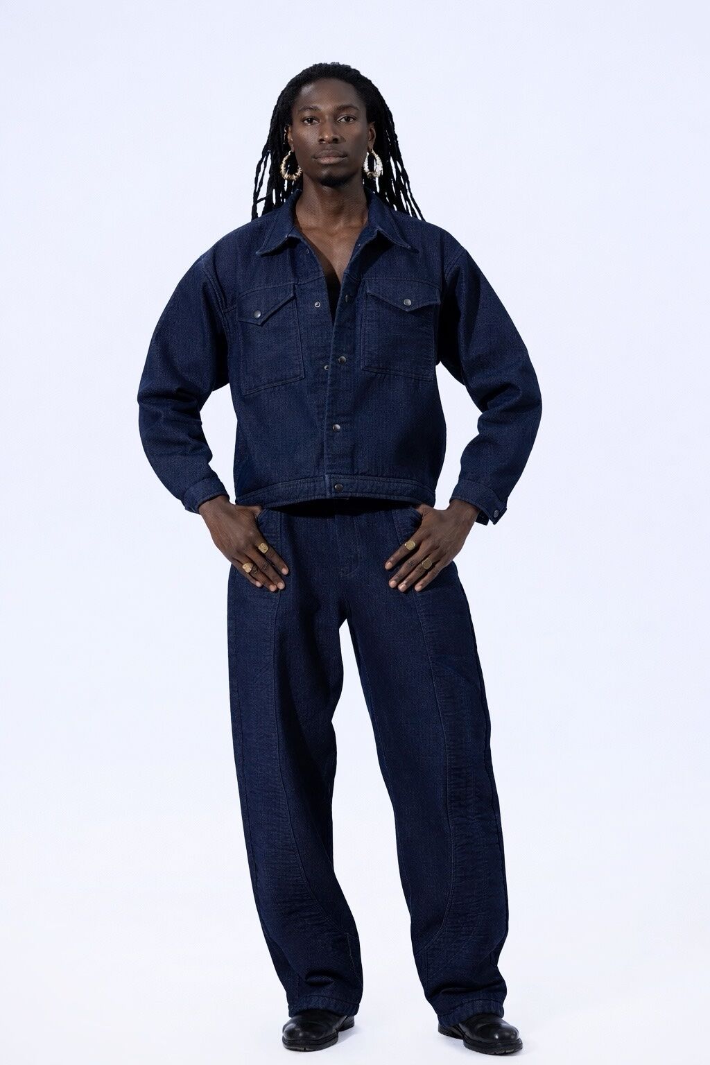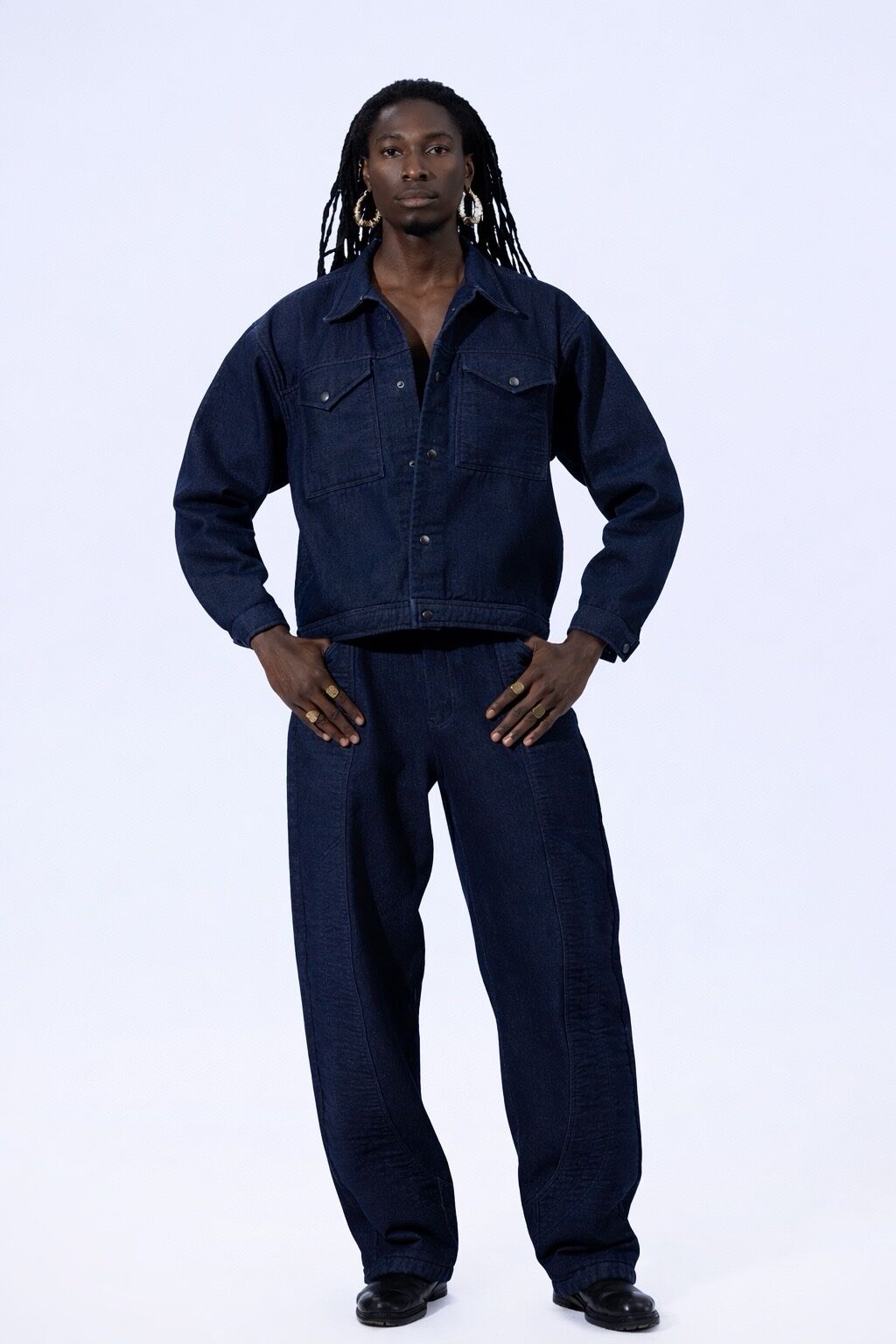 Refined simplicity meets modern edge in this effortlessly stylish two-piece set. Crafted from premium denim fabric, the set features a structured button-down jacket with dual chest pockets and a relaxed fit, paired with easy-cut trousers designed for all-day comfort.