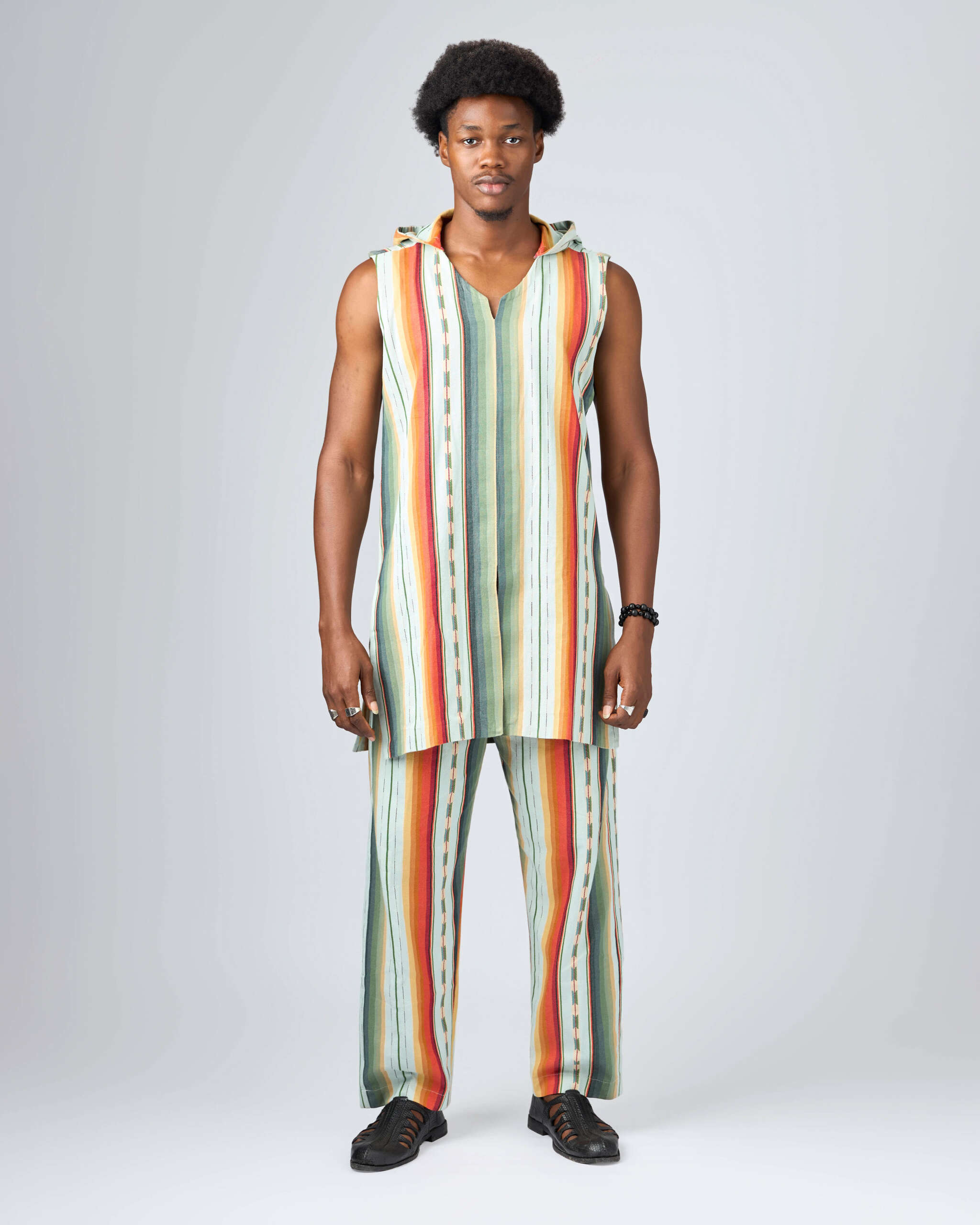 This outfit is referencing the Fulani’s nomadic spirit, simple yet powerful. It isn’t just clothing —
