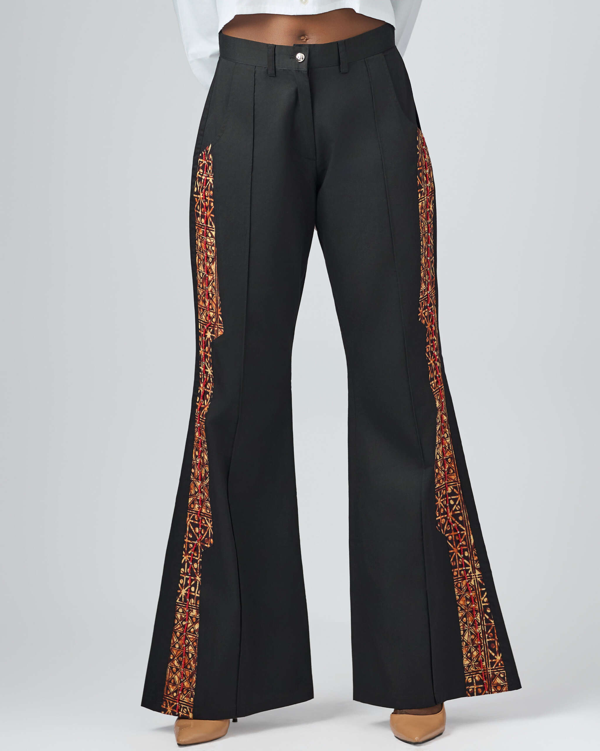 This patterned mudcloth boot cut trouser is a powerful fusion of history and style. Each