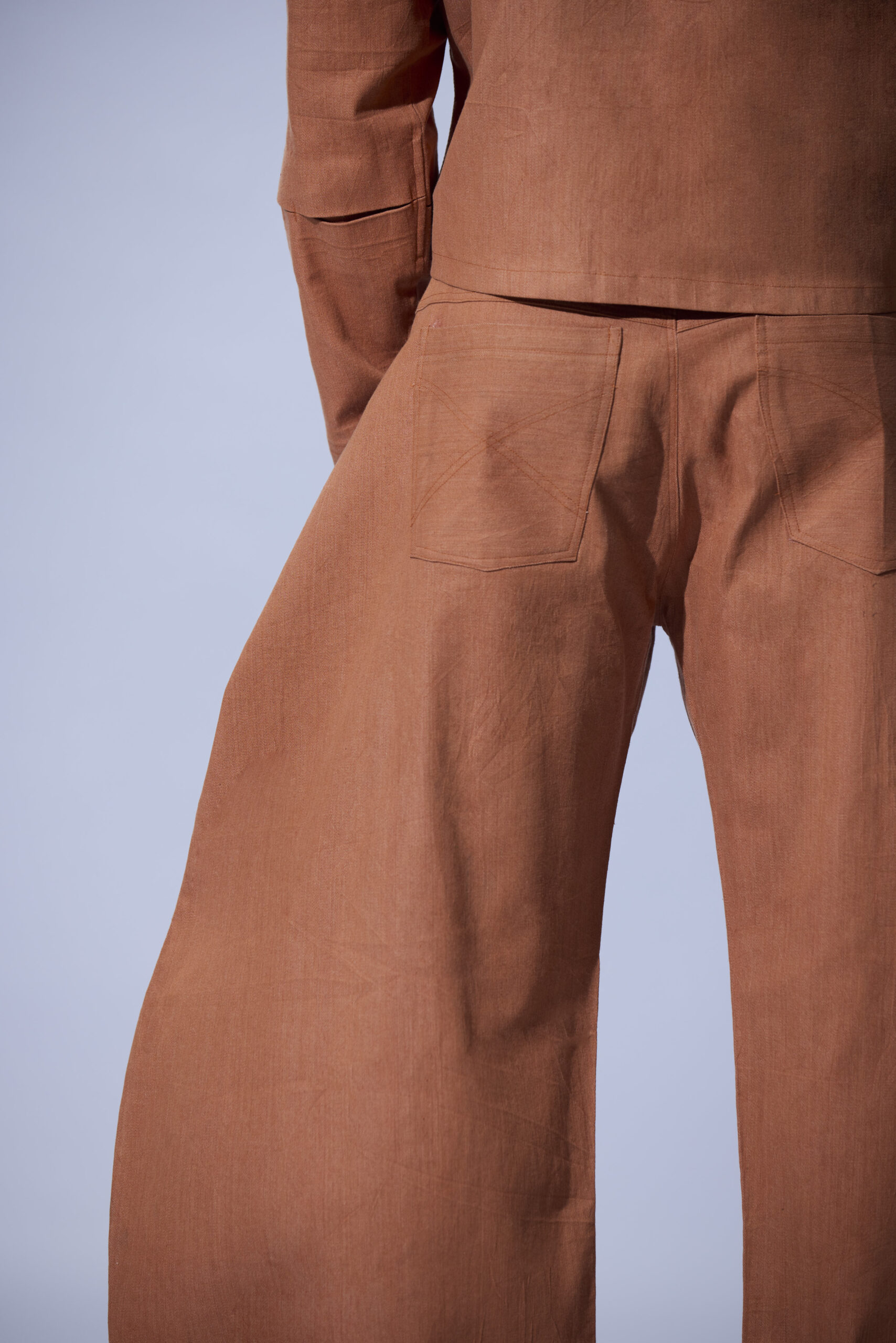 Rendered in a rich earth clay hue and crafted from structured, mid-weight denim, this piece embodies strength, texture, and quiet resilience.